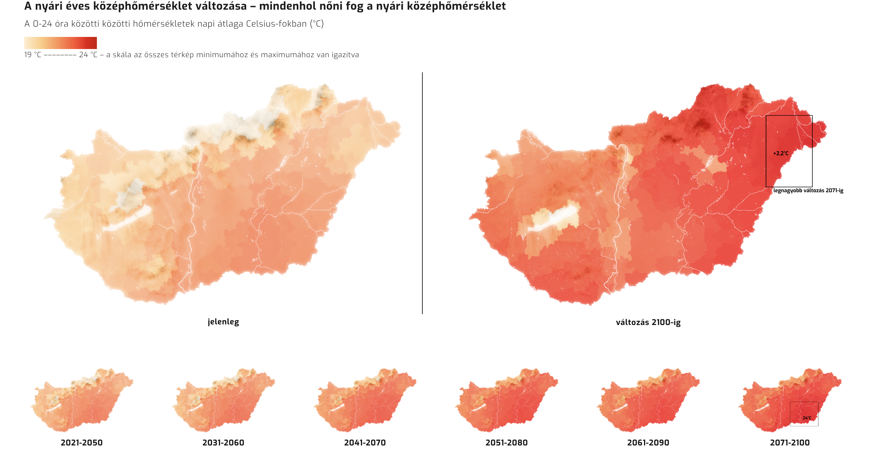 A nyári éves középhőmérséklet változása – mindenhol nőni fog a nyári középhőmérséklet.