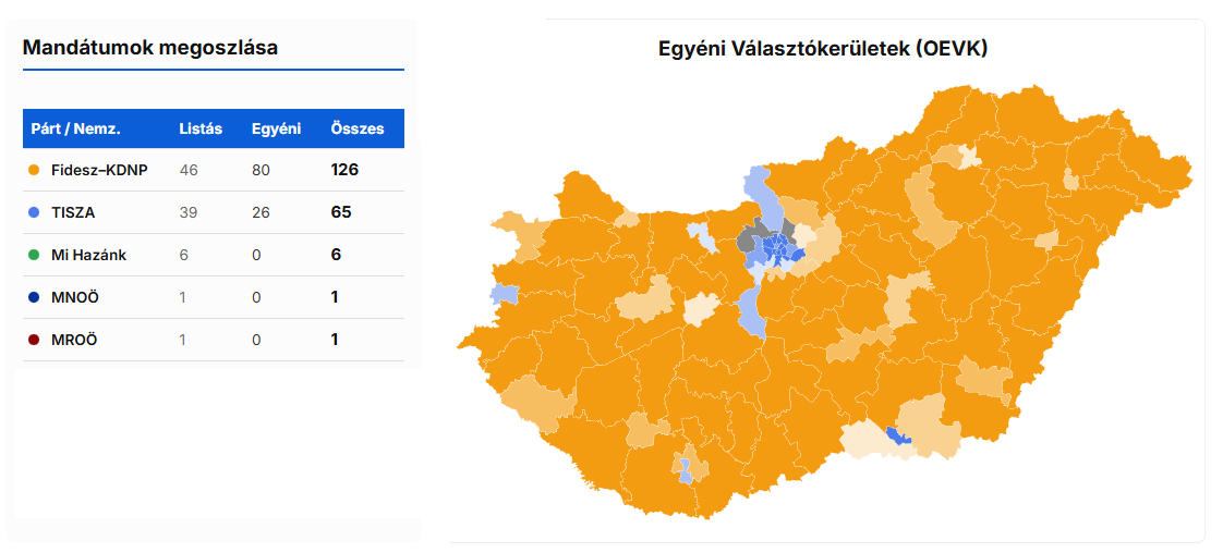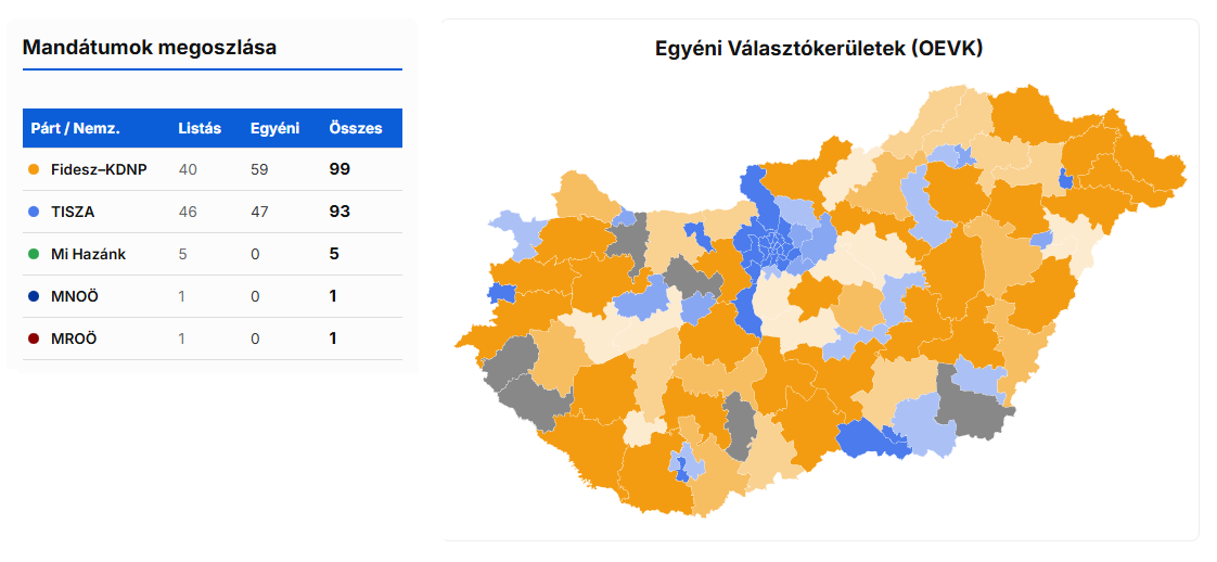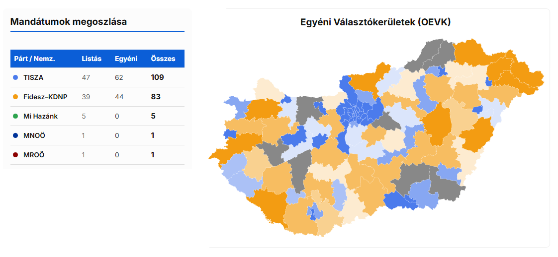 Ezek alapján a Tisza Párt 109, a Fidesz-KNDP 83 mandátumra számíthat.
