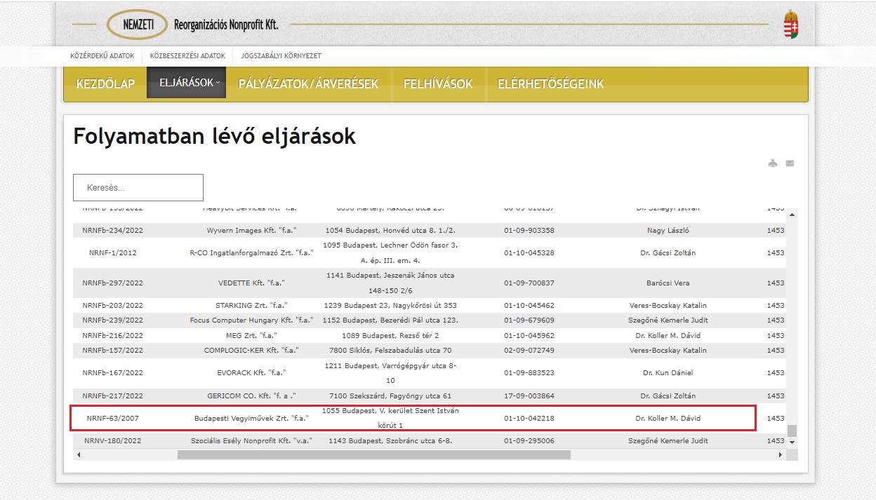 Miután a felszámoló céggel semmire sem jutottunk, közérdekű adatigénylést nyújtottunk be a nemzeti vagyon kezeléséért felelős tárca nélküli miniszternek is. A Nemzeti Reorganizációs Nonprofit Kft.-nek ugyanis az állam a tulajdonosa, és a nemzeti vagyon kezeléséért felelős tárca nélküli miniszter (NVTNM) felügyelete alá tartozik.