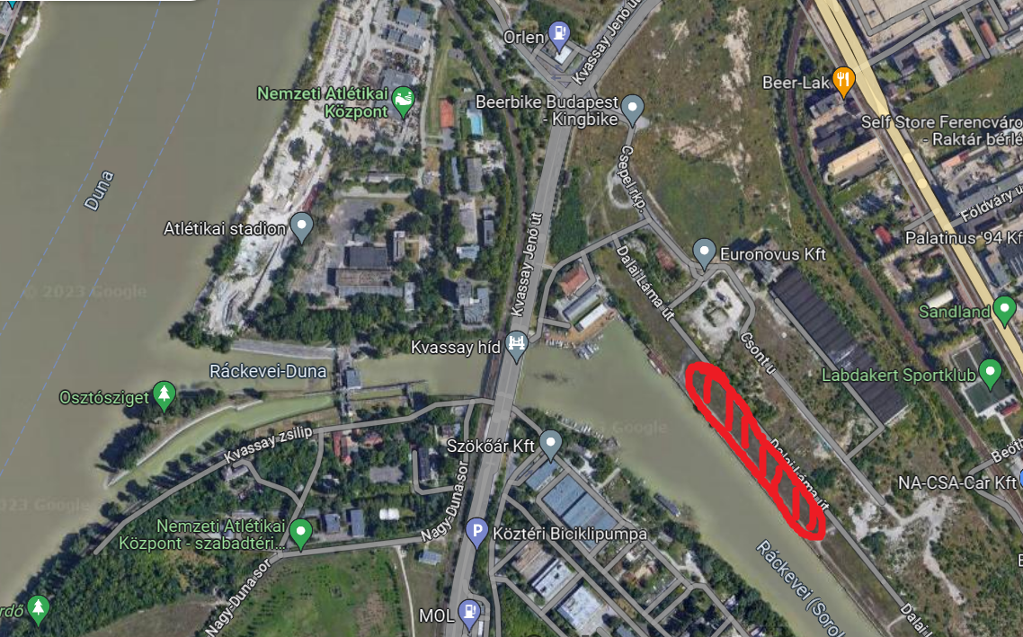 Vasárnap kellemes kora esti biciklizésre indultunk egy barátommal, az atlétikai stadiont szerettük volna közelebből megnézni. Sajnos, ez nem sikerült, mivel a létesítmény minden oldalról, több száz méteres körben rácsokkal le van zárva. A biztonsági őr felvilágosítása szerint legközelebb majd jövő szeptemberben juthat be oda a nagyközönség, akkorra készül majd el ugyanis a Ferencvárosi Szabadidő- és Sportpark. Szomorúságunkat kicsit enyhítette az őrök abbéli öröme, hogy így legalább egy évig van munkájuk. Tovább kerekeztünk, és egyik kedvenc helyünk, a régi Nagyvásártelep körüli elhagyatott Duna-part felé vettük az irányt. A megszokott pár pecás, néhány kóbor biciklis, susogó nádas, kacsák és a csodás ipari műemlék mellett ezúttal új tereptárgyak vártak: egy hatalmas, kietlen parkolóval és egy óriási, gazos földhányással fejlődött a terület.