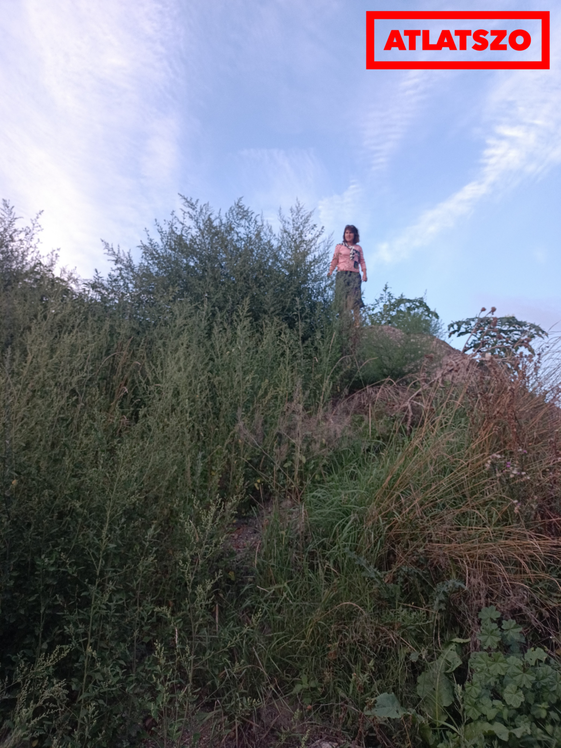 Hogy pontosan hány centiméteresek a növények, azt nem tudtam lemérni, sajnos teljesen felkészületlenül érkeztem: sem colstok, sem csini ruha nem volt épp nálam. Én 162 cm körül vagyok, ehhez lehet viszonyítani mind a földsánc, mind pedig a gyomok magasságát.
