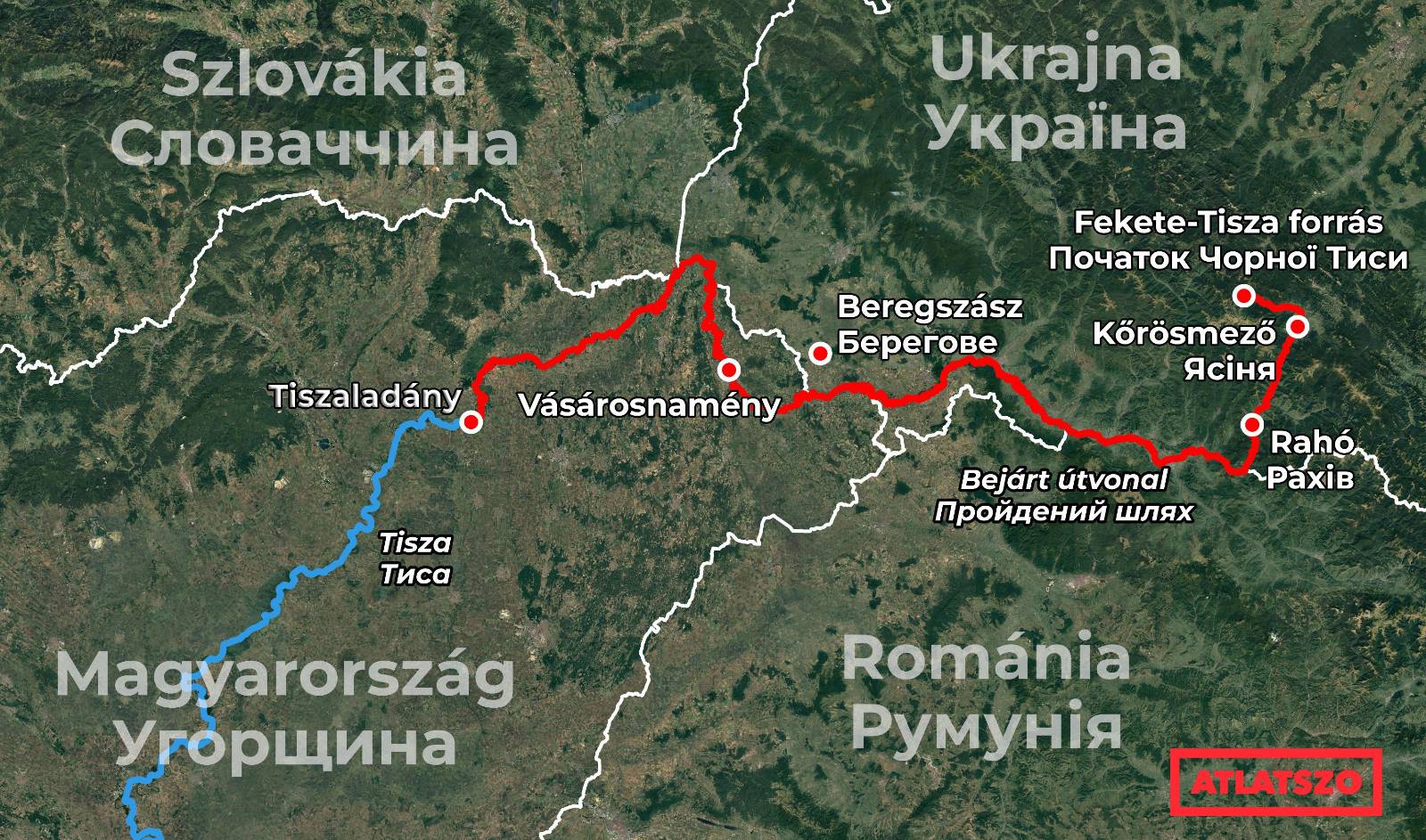 Elbúcsúzunk Bélától, és tovább indulunk a Tisza mentén. A települések központjában mindenhol a háborúban elesett katonák arcképei fogadnak. A 30 kilométerre fekvő járásközpont, Rahó (Рахів, Rahiv) felé tartunk, a város határában folyik össze a Fekete- és a Fehér-Tisza.