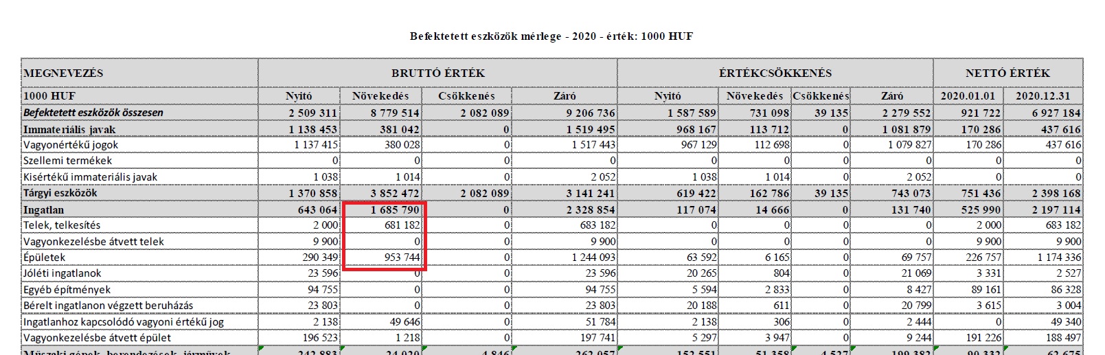 Az ingatlanok pontos ára tehát a megállapodásból nem derül ki. Ha megnézzük a felvásárló cég, a KELLO 2020-as évre vonatkozó beszámolóját, akkor azt találjuk, hogy az ingatlanjainak a bruttó értéke abban az évben 1,68 milliárd forinttal nőtt (amiből a telkeké 681 millióval, az épületeké 954 millióval).