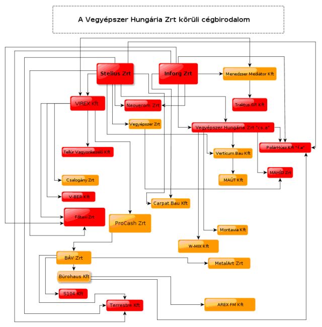 Graph: Vegyépszer concerned companies. Reds show the firms involved in buying claims.