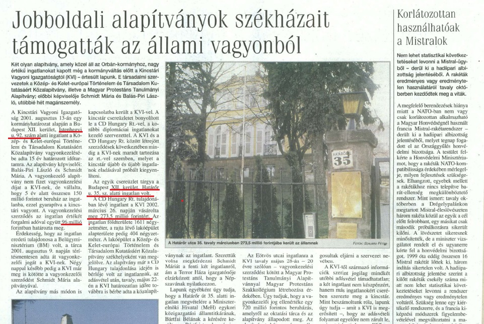A Népszava cikke megjegyzi érdekességként, hogy az ingatlan eredeti tulajdonosa a Belügyminisztérium volt, és a tárca 2001. augusztus 9-én térítésmentesen adta át a vagyonkezelő jogát a KVI-nek. Négy nappal később pedig a KVI már meg is kötötte a vagyonkezelői szerződést Schmidt Mária alapítványával.