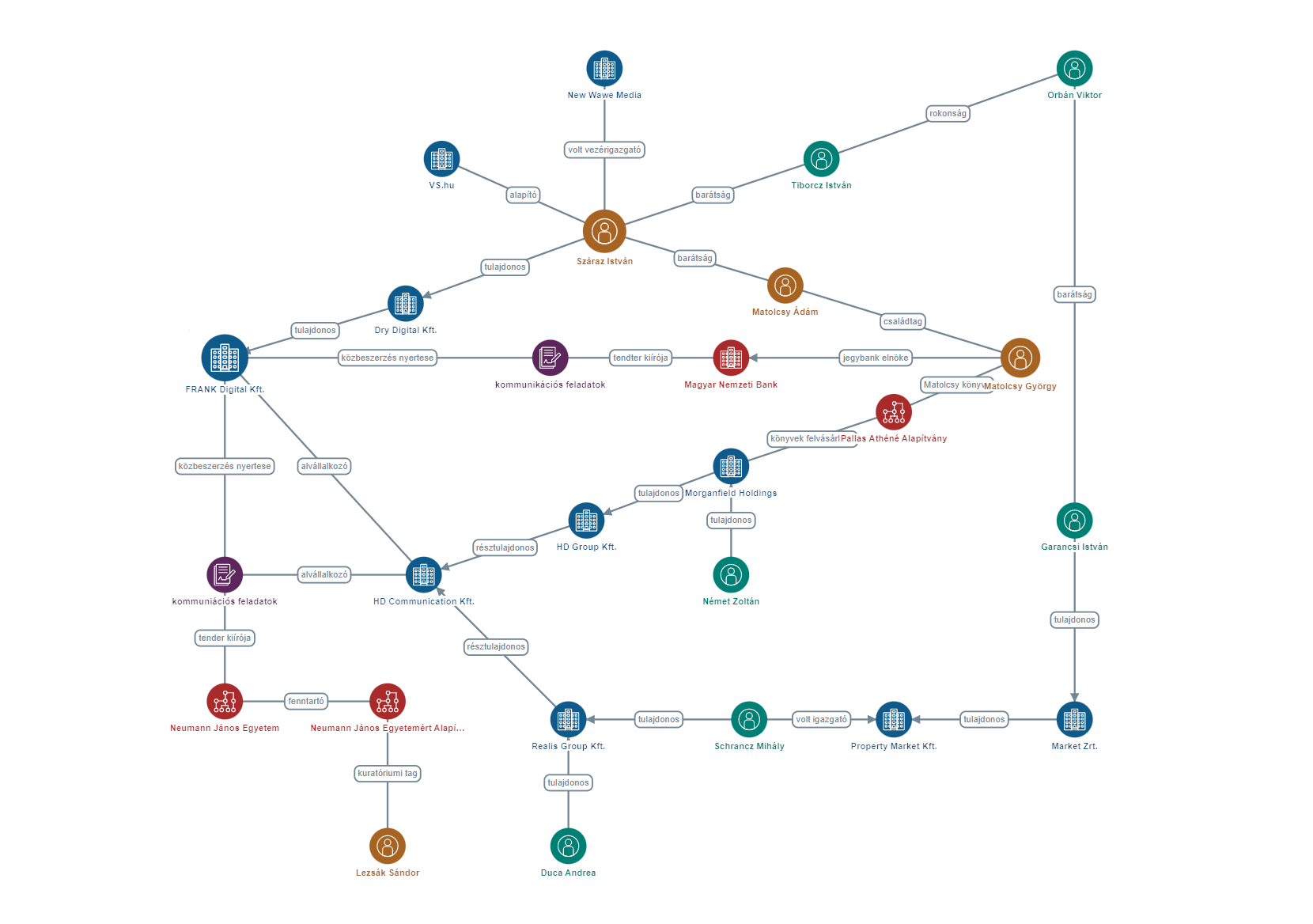A FRANK Digital és Száraz István kapcsolati hálója. A kép kattintással nagyítható. Forrás: Opten.hu