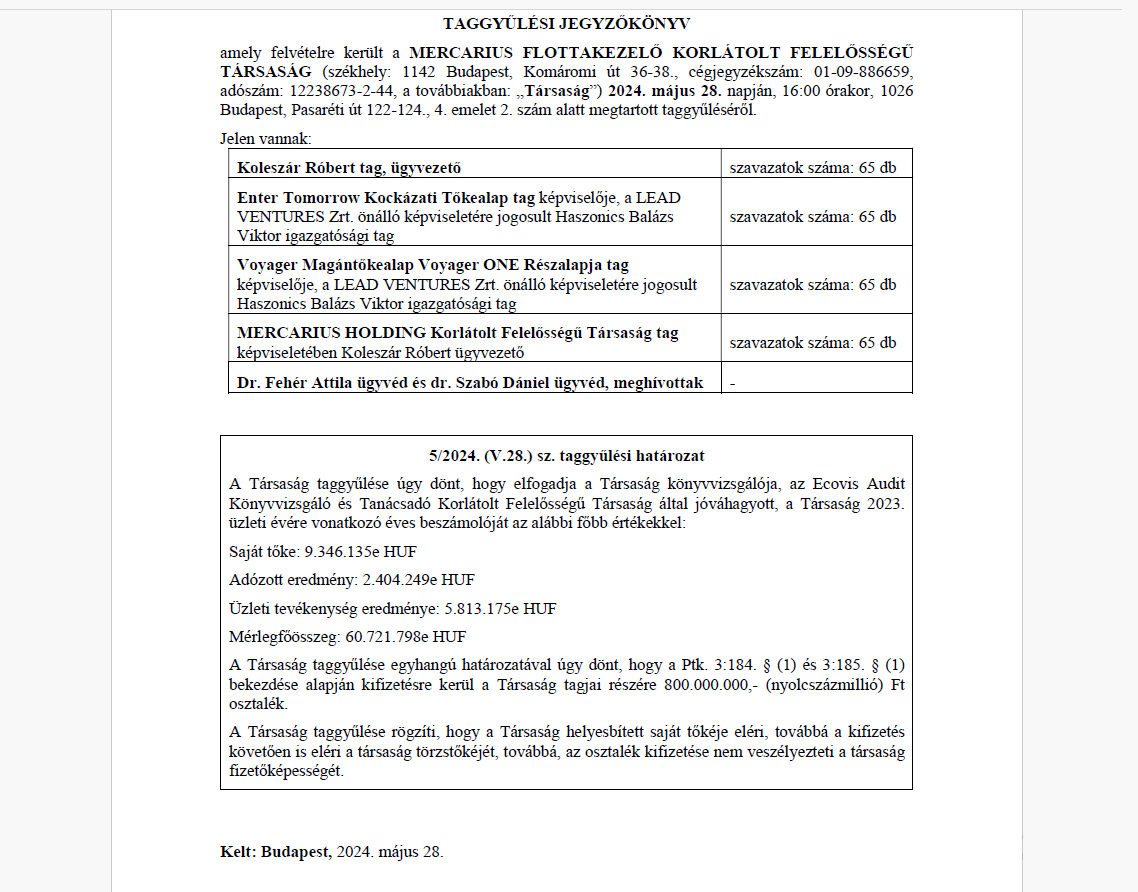 A Mercarius egyébként e téren mozgalmas időszakon van túl. Az elmúlt hónapokban ugyanis kétszer is átalakult a cég tulajdonosi köre. Először az Apelso Trust Bizalmi Vagyonkezelő Zrt. és a tulajdonában álló XTend Capital Kft. szerzett részesedést a cégben, majd a helyükre érkezett az Enter Tomorrow Kockázati Tőkealap és a Voyager Magántőkealap Voyager ONE Részalapja.