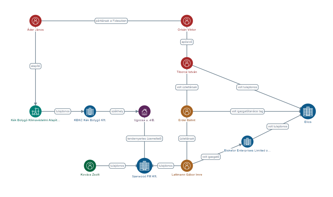 Talán csak puszta véletlen, de azért érdekes tény, hogy egy olyan kft. dolgozhat a Kék Bolygó Alapítvány cégének, amelynek egyik tulajdonosa egykor az Elios Zrt.-hez köthető offshore cég ügyvezetője volt. Lattmann Gábor jelenleg is üzlettársa Erdei Bálintnak, aki pedig Tiborcz István miniszterelnöki vővel egyidőben volt igazgatótanácsi tag az Eliosban. Lattmann vállalkozása, a Szerwood Kft. csak pár éve alakult, de már a második közbeszerzését nyeri: mindkettőt Áder János alapítványának cégétől.