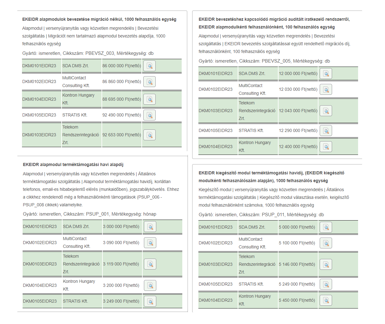 Az SDA DMS mindig kerek számokat adott meg (és a legolcsóbbat), ezektől tért el minimálisan a többi cég. A kép kattintással nagyítható.