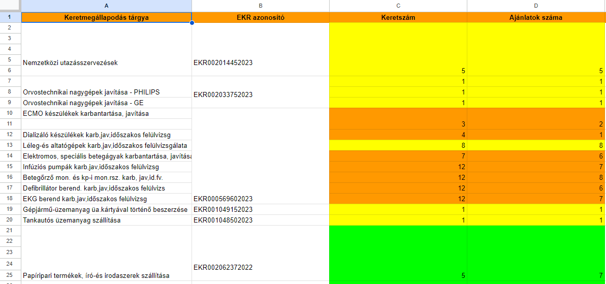 Ahhoz, hogy meg tudjuk vonni a KEF tevékenységének mérlegét, az informatikai beszerzésekhez hasonlóan összegyűjtöttük a KEF által (2024.05.01-ig) kiírt közbeszerzések főbb jellemző adatait.