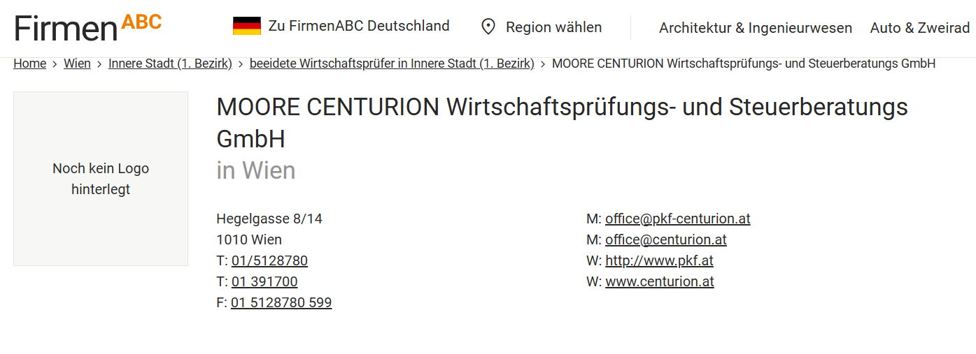 További érdekesség, hogy a MOORE-Centurion GmbH kapcsolati adatai között – a saját elérhetőségeik mellett – egy [email protected] e-mail-cím is szerepel, csakúgy, mint az osztrák PKF web- és e-mail-címe. Ez, amennyiben nem a korábbi cégkapcsolatból véletlenül megmaradt adat, PKF-es kötődésre utalhat.