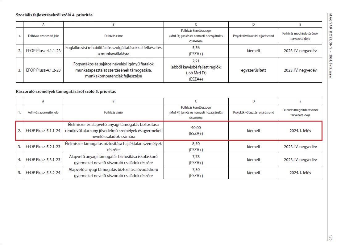 Még 2024 őszén írt ki előzetes piaci konzultációt a Szociális és Gyermekvédelmi Főigazgatóság (SZGYF) „Élelmiszer termékek, kartondobozok EFOP Plusz” címmel. A felhívás különféle élelmiszer segélycsomagok (élelmiszer termékek és azok csomagolására szolgáló kartondobozok) beszerzéséről szólt. Az anyagi hátteret uniós forrásból biztosították volna az EFOP plusz 5.1.1-24 számú kiemelt projekt keretében, a csomagokat pedig meghatározott rászoruló személyeknek szánták.