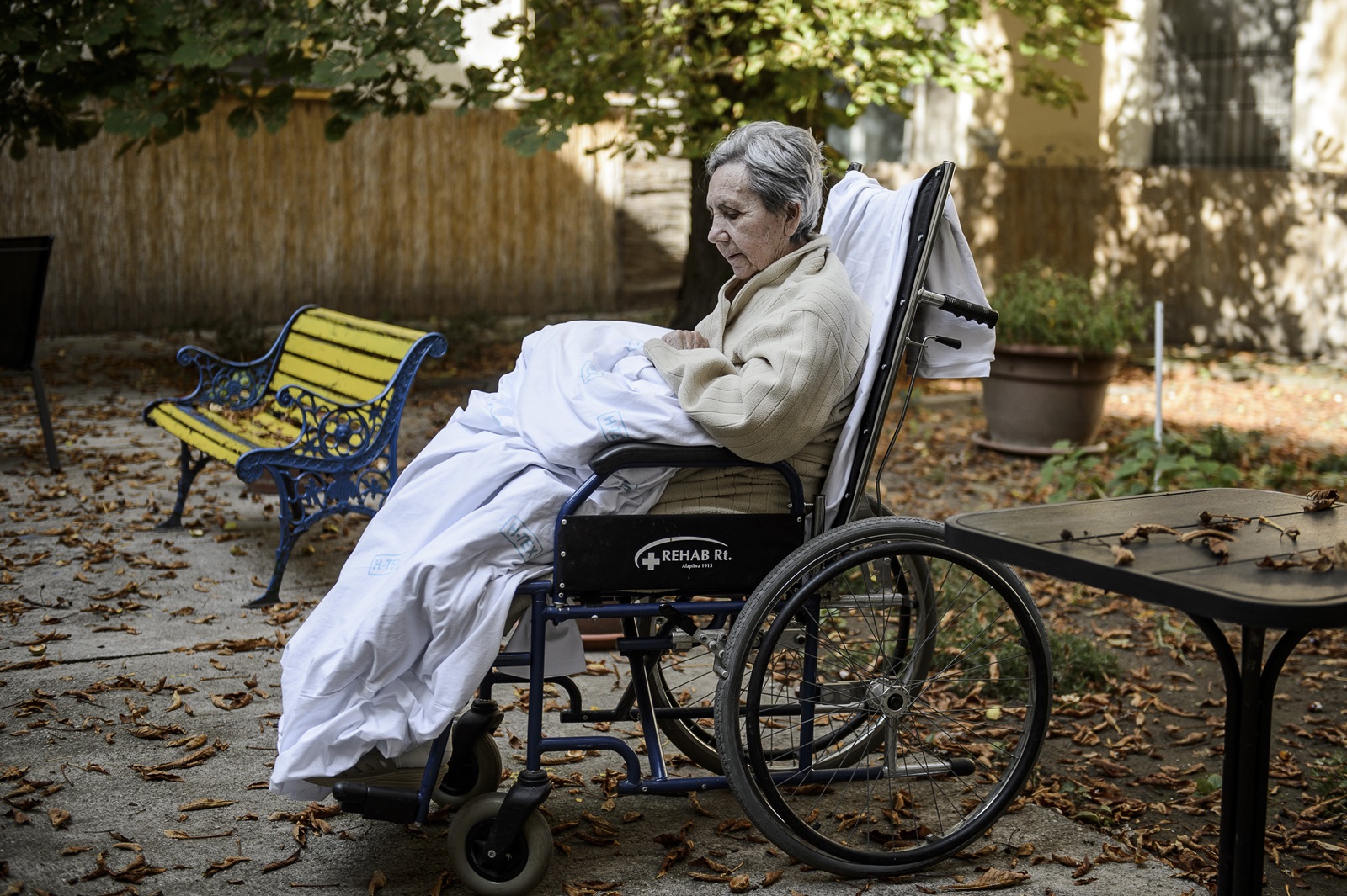 Egy idős hölgy az udvaron levegőzik az egri Markhot Ferenc Kórház Hospice-osztályán 2019. szeptember 27-én. A hospice haldokló betegek humánus gondozását végző szervezet. A hazai hospice-szolgálatokat a Magyar Hospice-Palliatív Egyesület fogja össze és koordinálja. Minden év október második szombatján ünneplik meg a Hospice Ellátás Világnapját, melynek idei mottója „Az ellátásom a jogom” (fotó: MTI/Komka Péter)