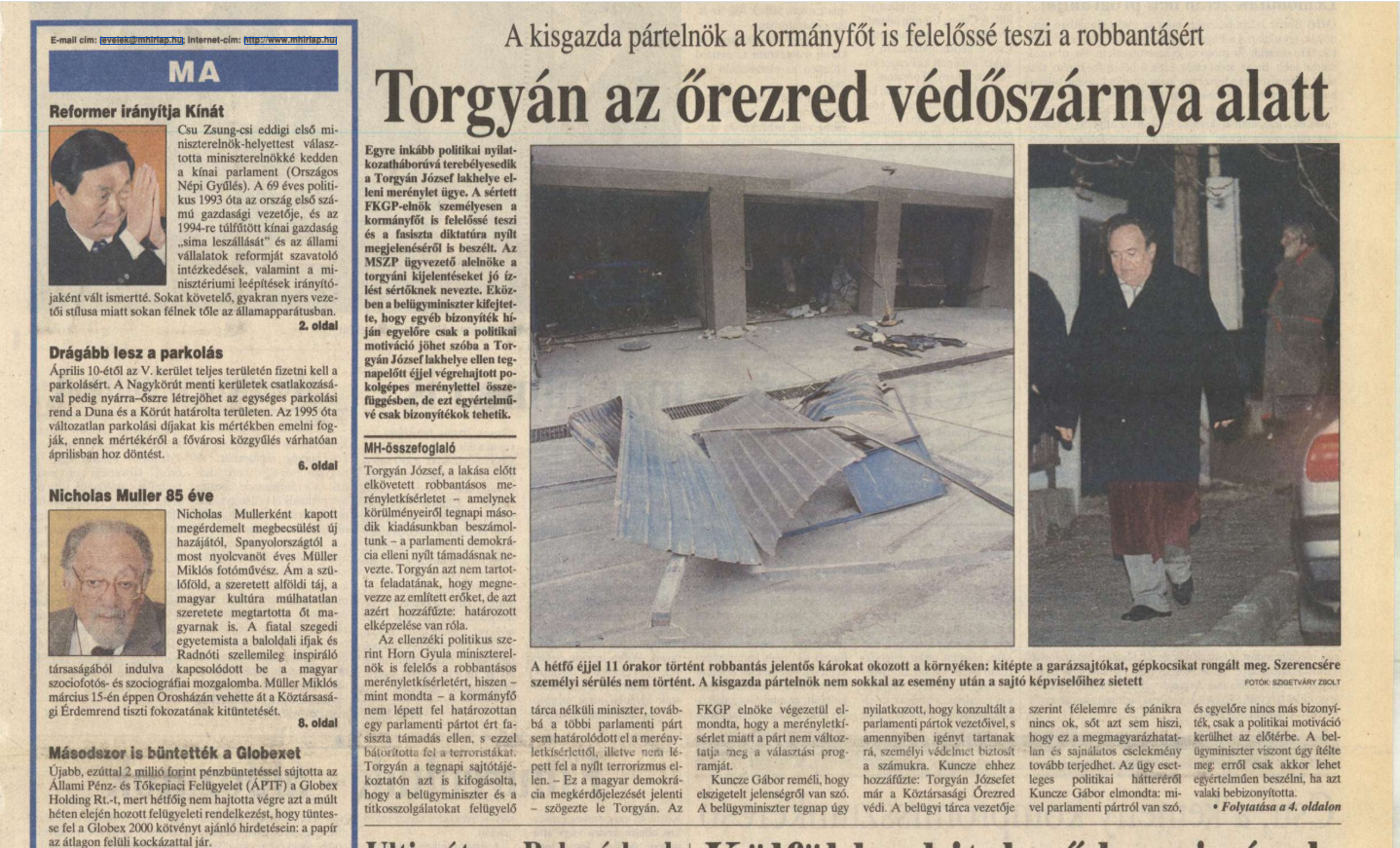Ráadásul 1997-98 folyamán MSZP- és SZDSZ-pártirodák, politikusok ellen is voltak csőbombás, Molotov-koktélos támadások, illetve ilyennel való fenyegetések, sőt a Horn Gyula és Pető Iván elleni szélsőjobbos merényletterv is nyilvánosságra került. Ennyi erővel azt is mondhatnánk: a korrupciógyanút felvető Tocsik-ügy, illetve a népszerűtlen Bokros-csomag megszorításai után a szoclib koalíció önmerényletekkel akart részvétet, együttérzést kelteni maga iránt. De bizonyíték hiányában ez ugyanúgy megalapozatlan lenne.