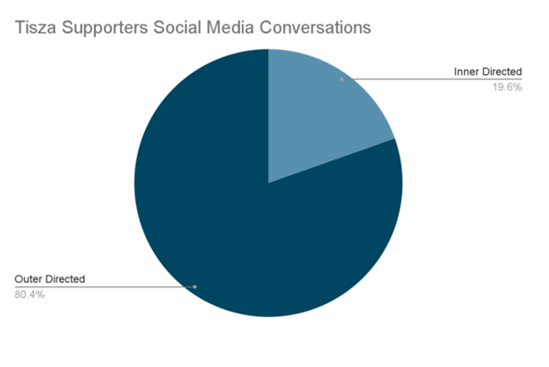Fontos hangsúlyozni, hogy mindkét politikai oldal kommunikációjában többségben vannak a külső irányítottságú megnyilvánulások, ami a politikai diskurzus természetéből fakad. A közösségi média ugyanis alapvetően nyilvános tér, ahol az emberek gyakran csoportidentitásuk megerősítésére használják a kommunikációt. A lényeges különbség tehát nem az abszolút arány, hanem a két tábor közötti eltérés és annak következményei.