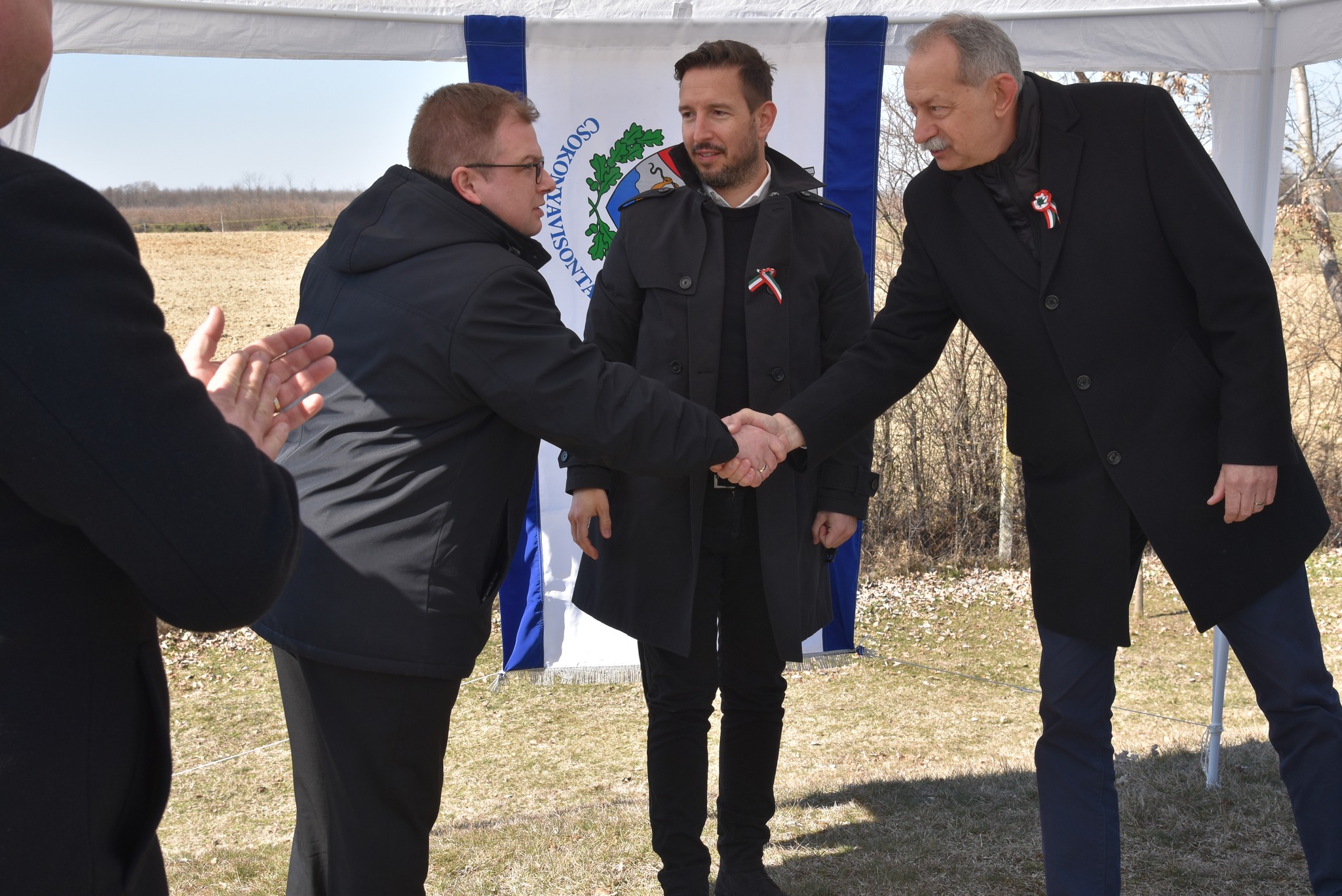 A márciusi alapkőletétel, középen Kuti Balázs, jobbra Szászfalvi László (fotó: Facebook / Szászfalvi László)