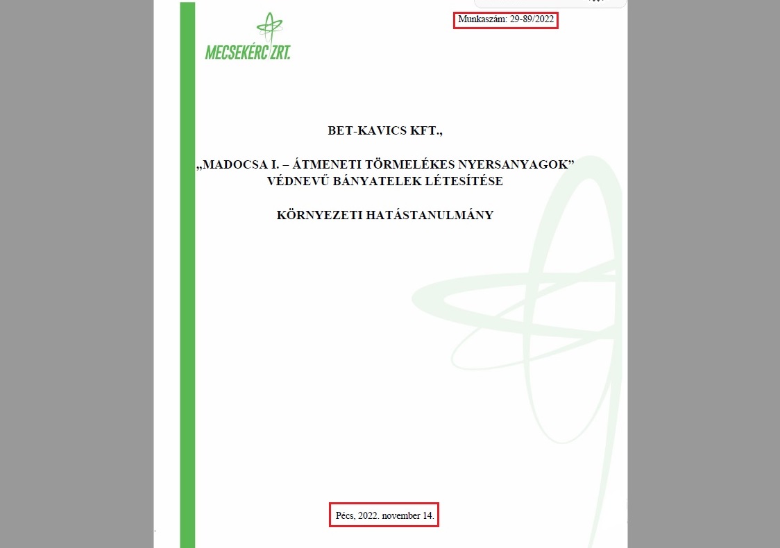 A környezeti hatástanulmányon 2022-es dátum szerepel.
