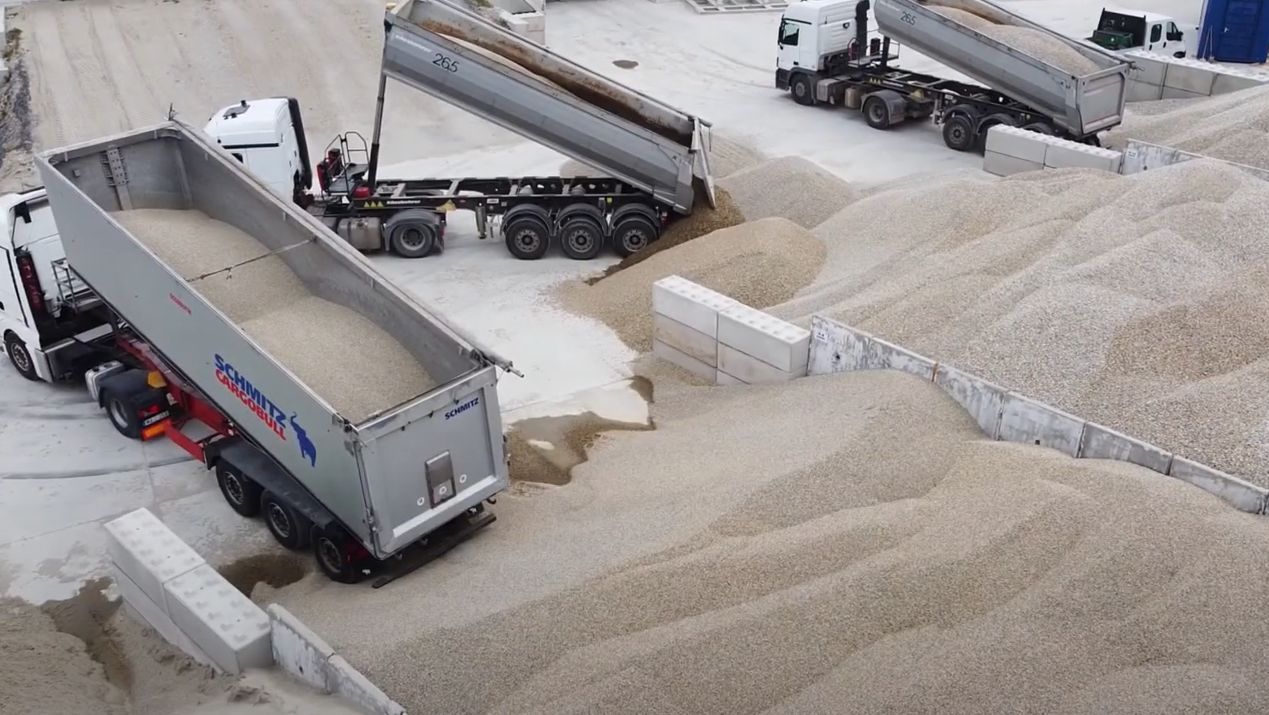 A Vass család betongyártó cége, a V&Periko teherautói munka közben. Forrás: Youtube