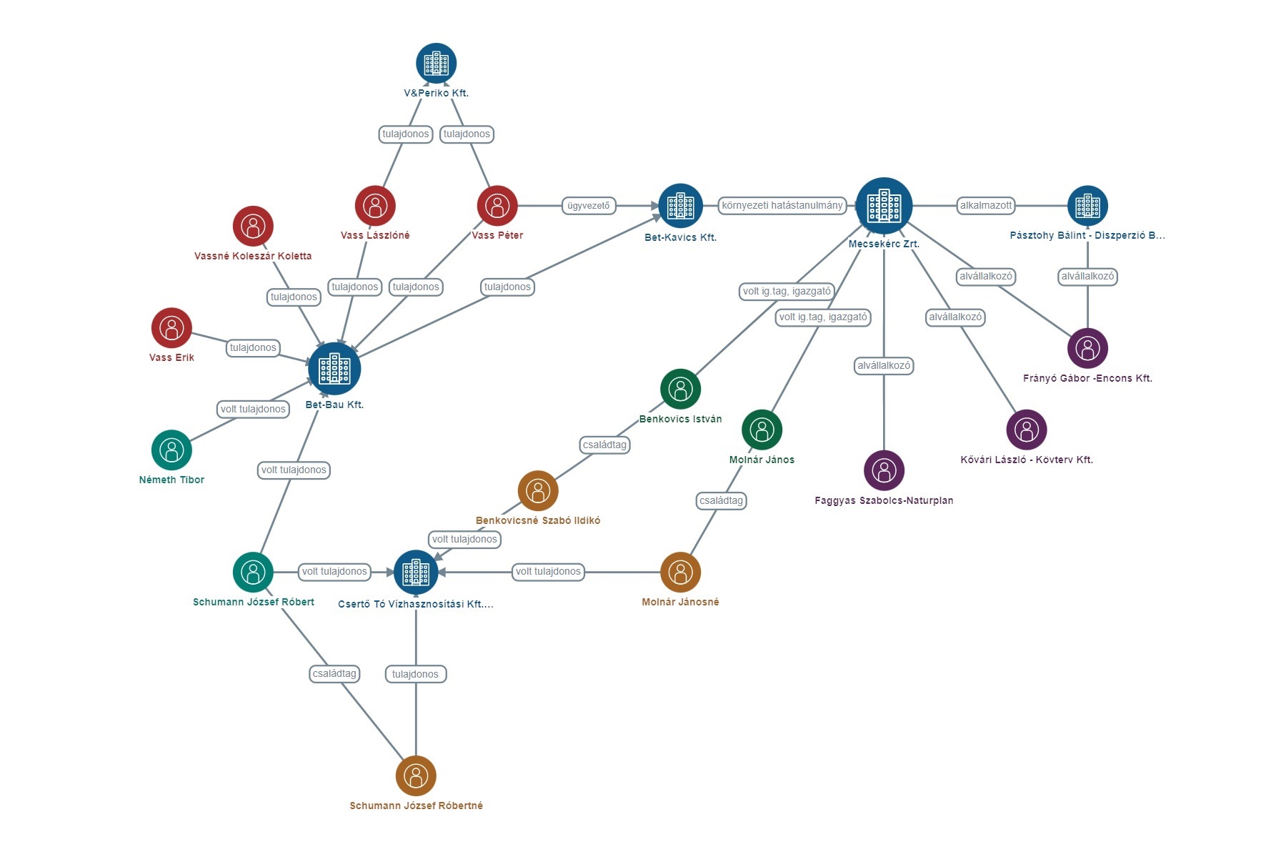 Ennél is érdekesebb azonban, hogy a korábbi tulajdonos Schumann József Róbertnek és feleségének, valamint Benkovicsné Szabó Ildikónak és Molnár Jánosnénak egy időben közös cégük volt: a pécsi Csertő Tó Vízhasznosítási Kft. A férjek: Benkovics István és Molnár János pedig az állami tulajdonú Mecsekérc Zrt. igazgatósági tagjaként és igazgatójaként dolgoztak.