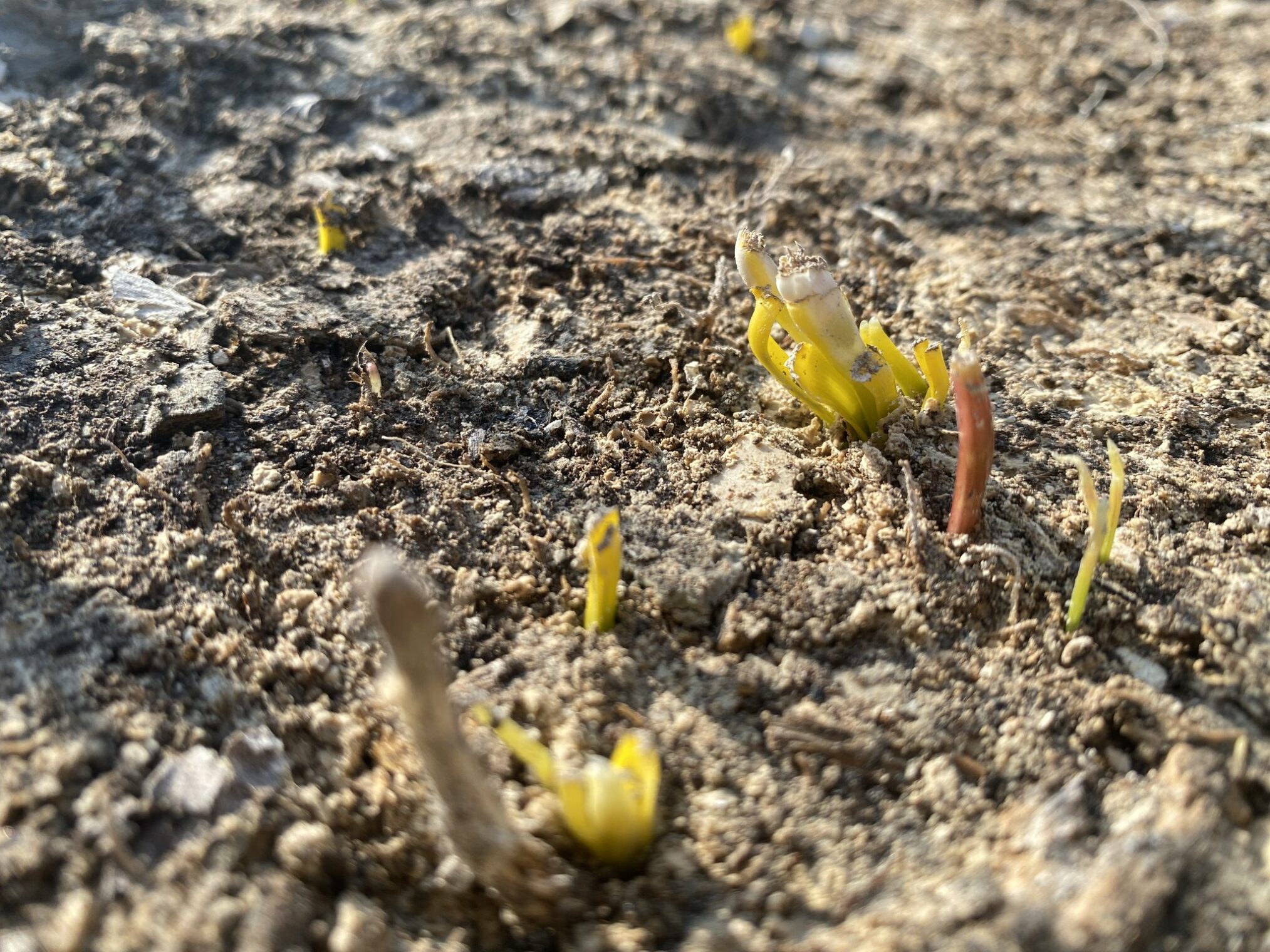 A téltemető virágai megpróbálnak előbújni a cementtörmelék alól 2023. március 4-én. (Forrás: olvasónk felvétele)