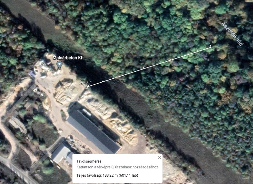 A betonüzemből származó kifolyás iránya és távolsága. (Forrás: olvasónk térképvázlata a Google Maps felhasználásával.)