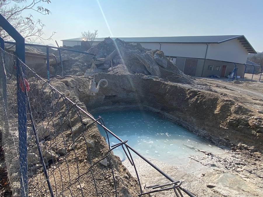 Medence a betonüzem területén, a kerítés mellett; a felvétel 2023. február 15-én készült. (Forrás: olvasónk fotója)