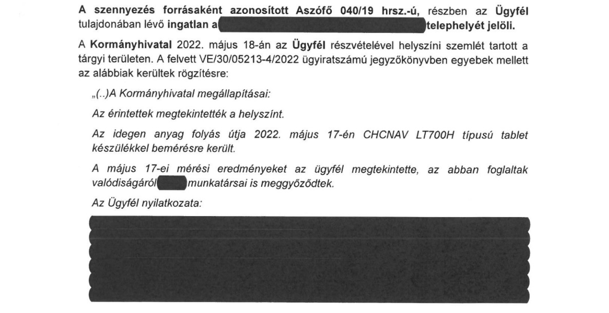 A cementkifolyás eredete a hatósági határozat szerint a 040/19. helyrajzi számú aszófői ingatlan. A dokumentum szerint ott egy telephely működik, annak nevét azonban gondosan kitakarták egy közadatigénylésre válaszul küldött dokumentumban.