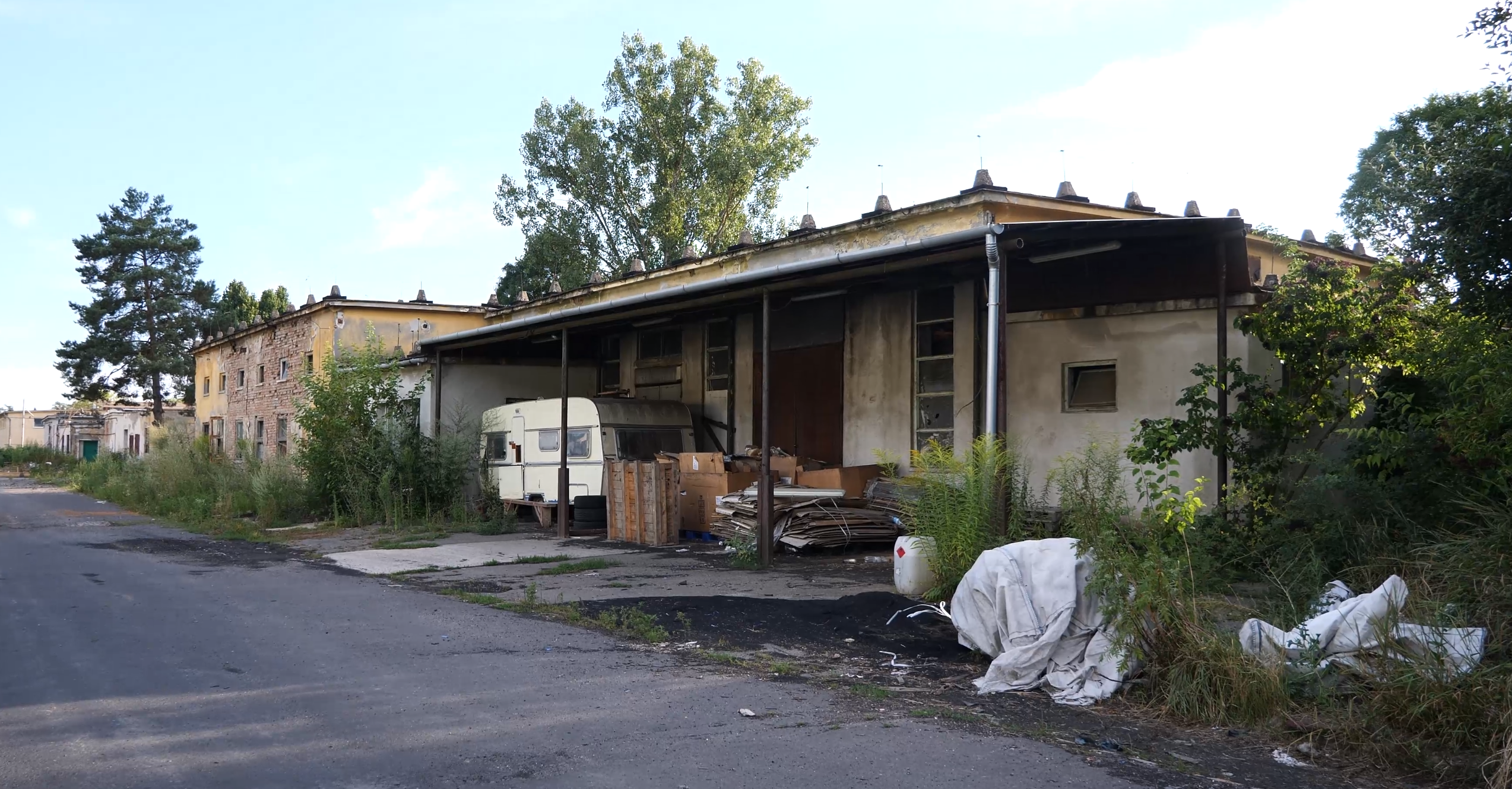 Ebben a tűzvédelem nélküli épületben vannak jelenleg is felhalmozva az akku-gyártásban használt anyagokat tartalmazó zsákok és dobozok. (Fotó: olvasónk)