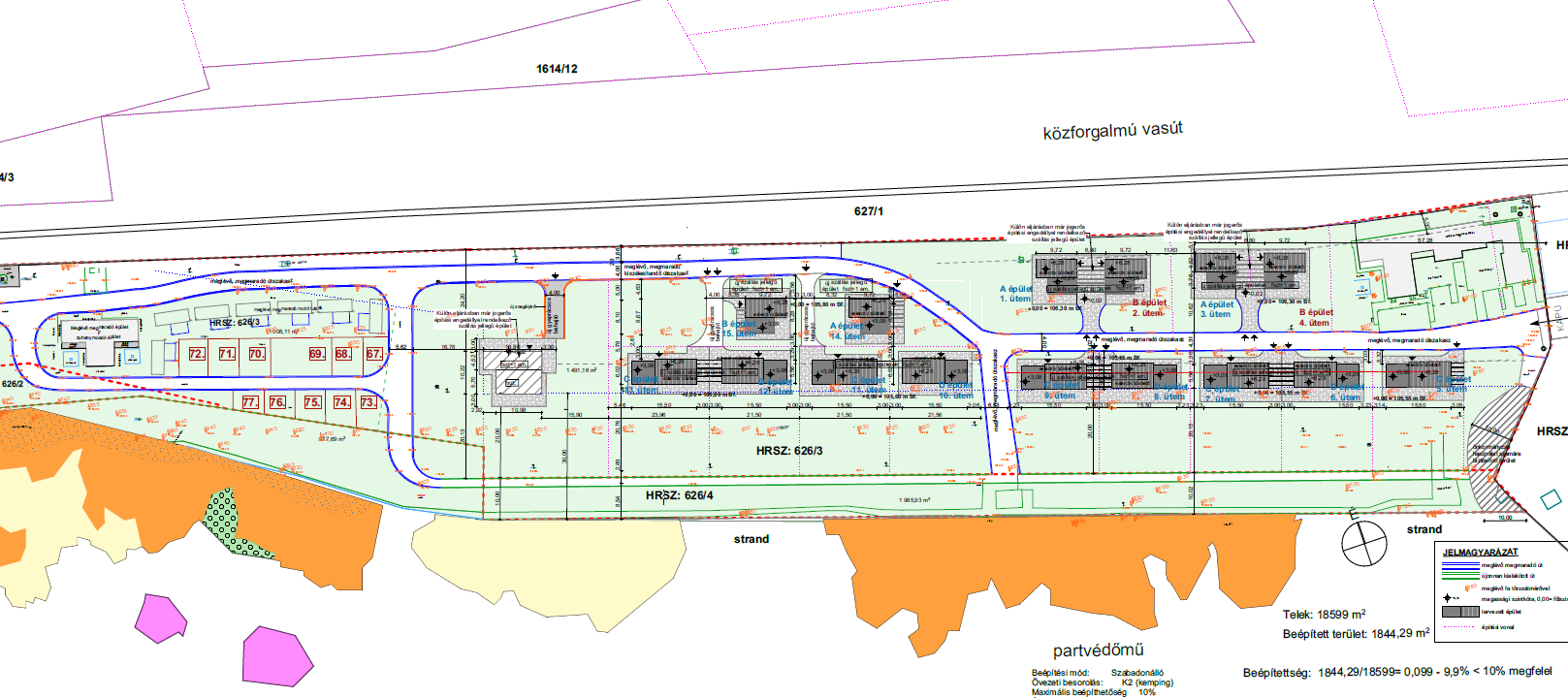 A tervezés azonban a valóságban ennél már előrehaladottabb, a tulajdonosnál ugyanis bőbeszédűbb az ÉTDR (azaz az építésügyi hatósági engedélyezési eljárásokat támogató elektronikus dokumentációs rendszer), ahol a 626/3 helyrajzi szám alatt három építési engedélyezési eljárást találni, amit még 2021 és 2022-ben indítottak. A telek mérete 18 599 négyzetméter, a dokumentum szerint a beépített terület: 1844 négyzetméter lenne, azaz 10 százalék.