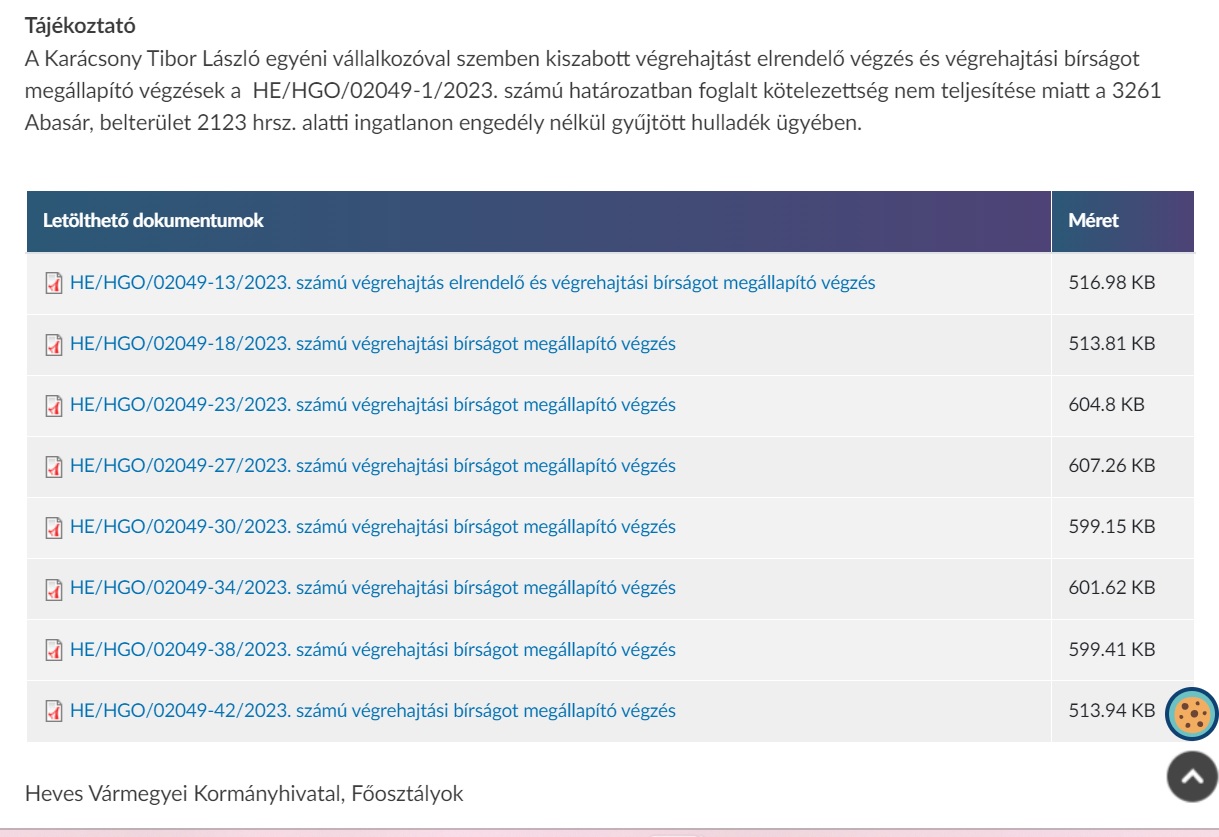 A hatósági büntetés és a politikusi ígéretek ellenére azonban az ügy egyáltalán nem rendeződött. Szeptember közepén közadat-igénylésben kértük ki a hulladék elszállítását igazoló dokumentumokat a Heves Vármegyei Kormányhivataltól, viszont ők csak azt válaszolták, hogy a határozat végrehajtása „folyamatban van”. Ugyanakkor azt is közölték, hogy a hulladék elszállítására kötelezett, 103 millió forintos büntetéssel sújtott vállalkozó „keresettel támadta meg a döntést”.