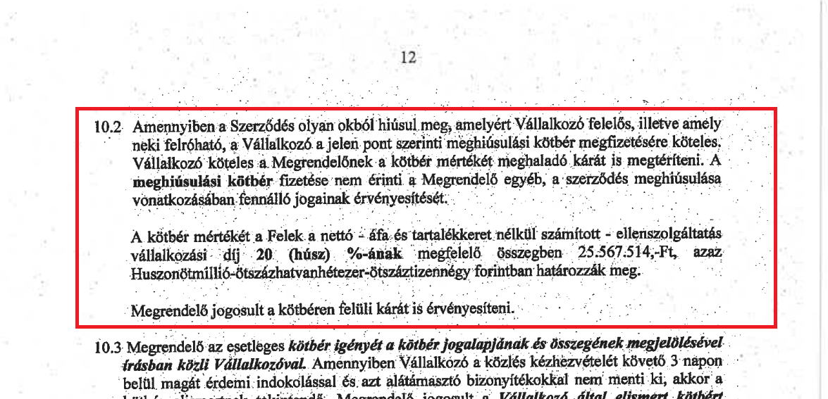 Megnéztük a szerződést, ami szerint a megrendelő jogosult a kötbéren felüli kárát is érvényesíteni. Azonban a kártérítésről hiába kérdeztük az önkormányzatot, Marics adatigényléséből pedig az derült ki, hogy kártérítésre nem került sor, és még a bontás költségét is az önkormányzat állta.