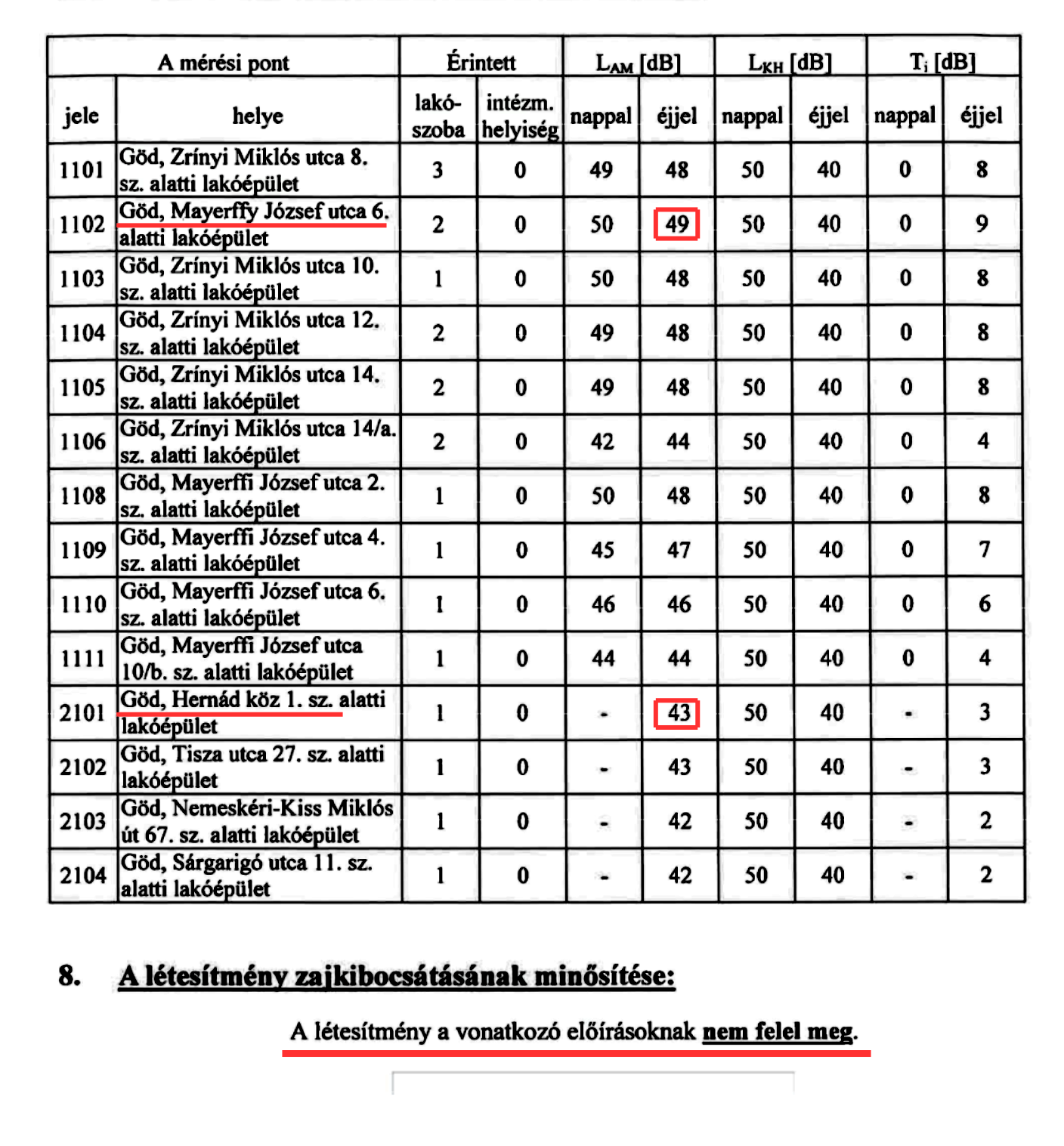 Csakhogy mindez ellentétes a jogszabályi előírásokkal, melyek eleve nem teszik lehetővé több, egymást követő zajcsökkentési intézkedési terv elfogadását – nehezményezik a civilek. Ráadásul a Samsung a korábbi két intézkedési tervvel valójában haladékot kapott a hatóságtól, a zajproblémát mégsem sikerült az elmúlt öt évben rendeznie. Ugyanakkor az egyesület által közadatként kikért októberi hatósági mérési jegyzőkönyv – mely a most kiadott engedélyben nem szerepel – egyértelműen igazolja: nemcsak a gyártól 100-200 méterre lévő lakóházakban, de a 600-800 méterre lévő ingatlanokban is jelentős a zajtúllépés mértéke. A jegyzőkönyvben szereplő szakértői következtetés meg is állapítja: „A létesítmény a vonatkozó előírásoknak nem felel meg.” Ezért a civilek jogi álláspontja szerint amíg a zajhatárértékek betartását nem tudja biztosítani a cég, addig a gyár tevékenysége nem engedélyezhető – ezt nemcsak a hazai jogszabályok írják elő, de az Európai Parlament és a Tanács ipari kibocsátásokról szóló 2010/75/EU irányelve is.
