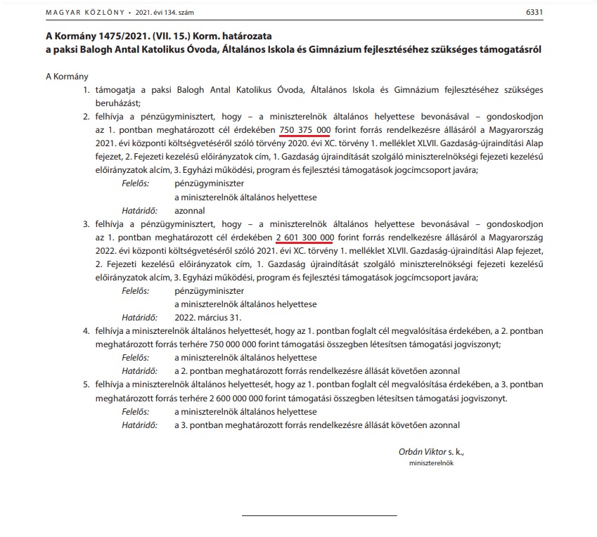 A Pécsi Egyházmegye közpénzből újíthatja fel a Paksi Balogh Antal Katolikus Általános Iskolát. Első körben nettó 724 millió, a második körben nettó 1,88 milliárd forintot fordítanak a munkálatokra. A szükséges források biztosításáról a kormány még 2021-ben döntött, amikor 2,6 milliárd forintot irányzott elő a célra. De miközben az egyházi iskolára jut (köz)pénz, addig a paksi önkormányzatnak le kellett állítania többek között a strandberuházást, visszamondani egy buszbeszerzést, és a sportegyesületek támogatását is fel kellett függesztenie. Mindezt azért, mert a kormány elvonta a várostól azt a több milliárd forintot, amit az atomerőműtől kapna iparűzési és ingatlanadóként.
