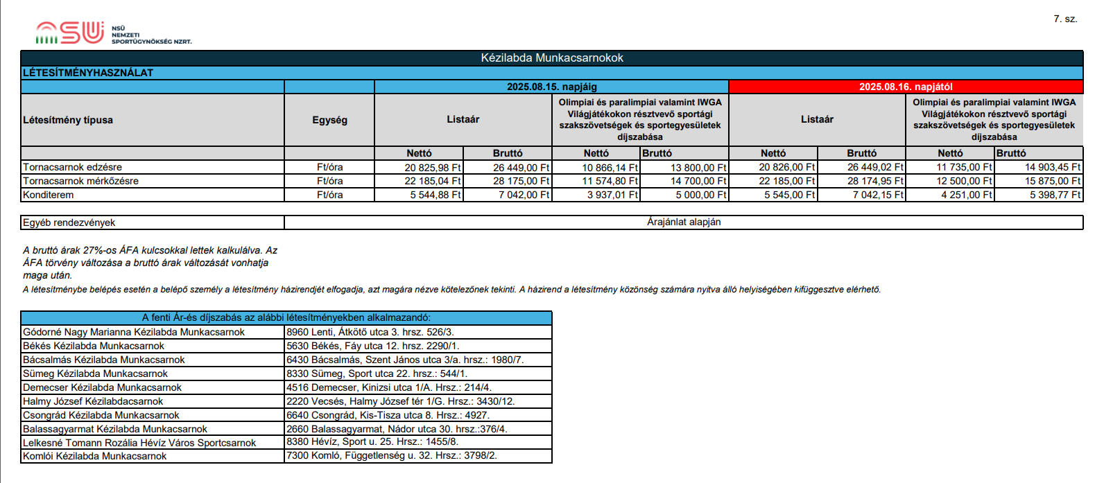 Az ártáblázat alapján a komlói kézilabda csarnoknak (ha az iskolák nem kaptak semmilyen kedvezményt) 22 x 24 449 forint, azaz bruttó 537 878 Ft bevétele volt szeptember és október hónapban. Mivel havonta 7,3 millió forint a fenntartása, ez összesen 14,6 millió forint kiadást jelent ugyanezen időszakra.