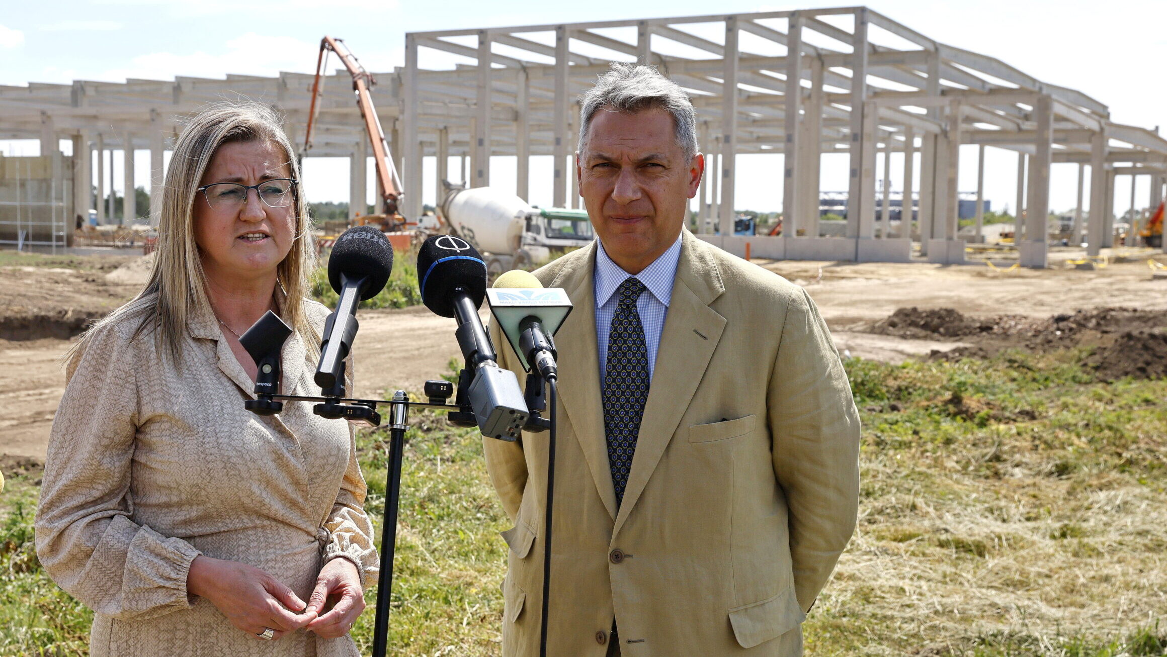 Címlapkép: Lázár János építési és közlekedési miniszter és Farkas Éva Erzsébet, a Fidesz-KDNP makói polgármestere a makói ipari parkban tartott sajtótájékoztatón 2024. május 6-án a Benepack épülő gyára előtt (fotó: MTI/Lehoczky Péter)