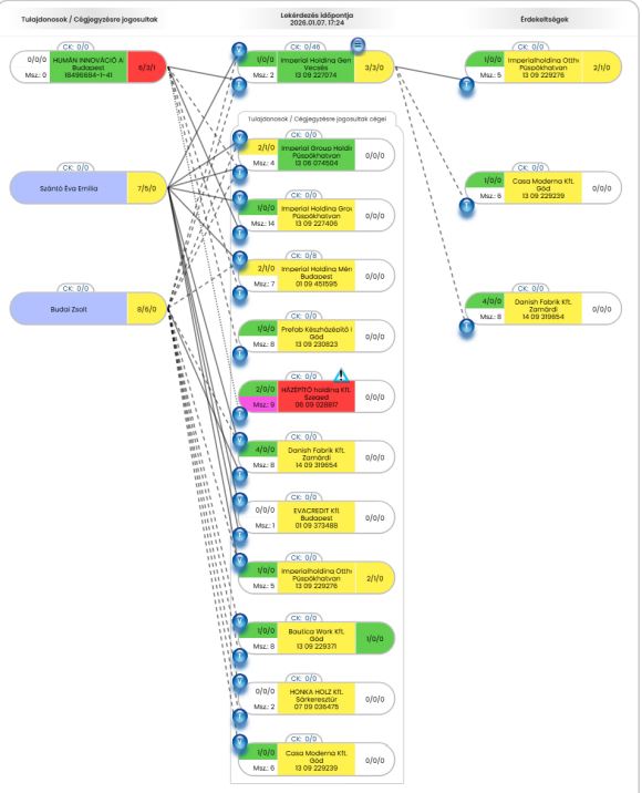 Az Opten adatbázisa szerint a 2013-ban alapított Imperiál Házépítő Holding Kft.-nek az évek során több tulajdonosa is volt, köztük 2022 márciusától a Humán Innováció Alapítvány, melynek kuratóriumi elnöke az a Virág Gergő, akivel a megrendelők, azaz Zsófi és János korábban találkozott. A Virág által vezetett alapítvány azonban 2023 elején eladta a 7,5 millió forint értékű üzletrészét, azóta pedig a cég egyedüli tulajdonosa egy szlovák lakcímű férfi, aki 2023 tavaszán megváltoztatta a cég nevét HÁZÉPÍTŐ Holding Kft.-re. A szlovákiai tulajdonos és a megváltozott név ellenére azonban a cégadatbázisban a vállalkozás email-címe a mai napig az Imperiál csoporttal való kapcsolatra utal.