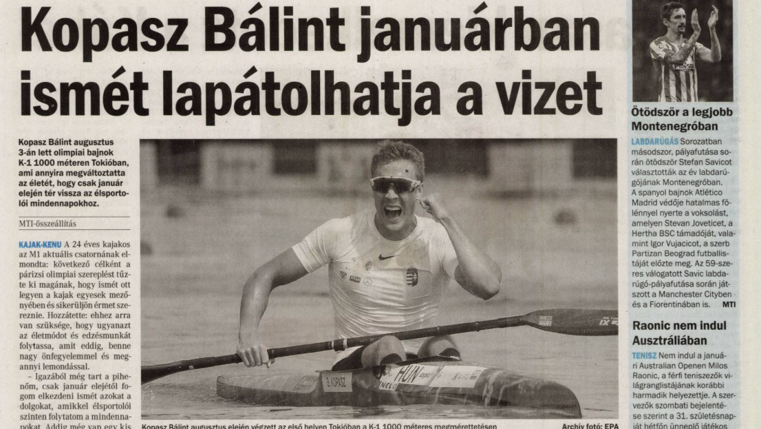 Kopasz Bálint a 2021-es tokiói olimpián nyert aranyérmet (forrás: Nógrád Megyei Hírlap 2021. december 27./Arcanum)