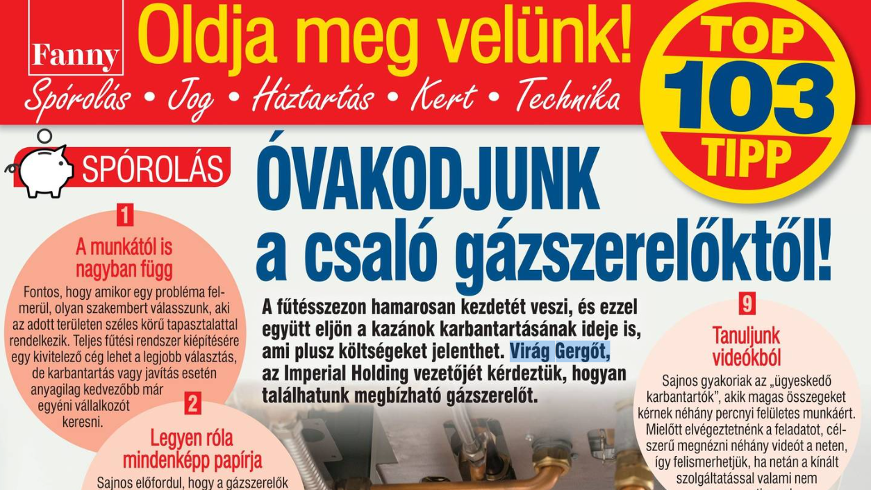 Tibor az egyeztetéseket követően 2022 márciusában megkötötte a szerződést, mely anyagköltséggel együtt kb. 6 millióról szólt, és tartalmazta a kazán beszerelését, valamint a víz-gáz-fűtésszerelési és villanyszerelési munkálatokat is. Tibor párja az összeg felét előlegként elutalta az Imperiálnak.