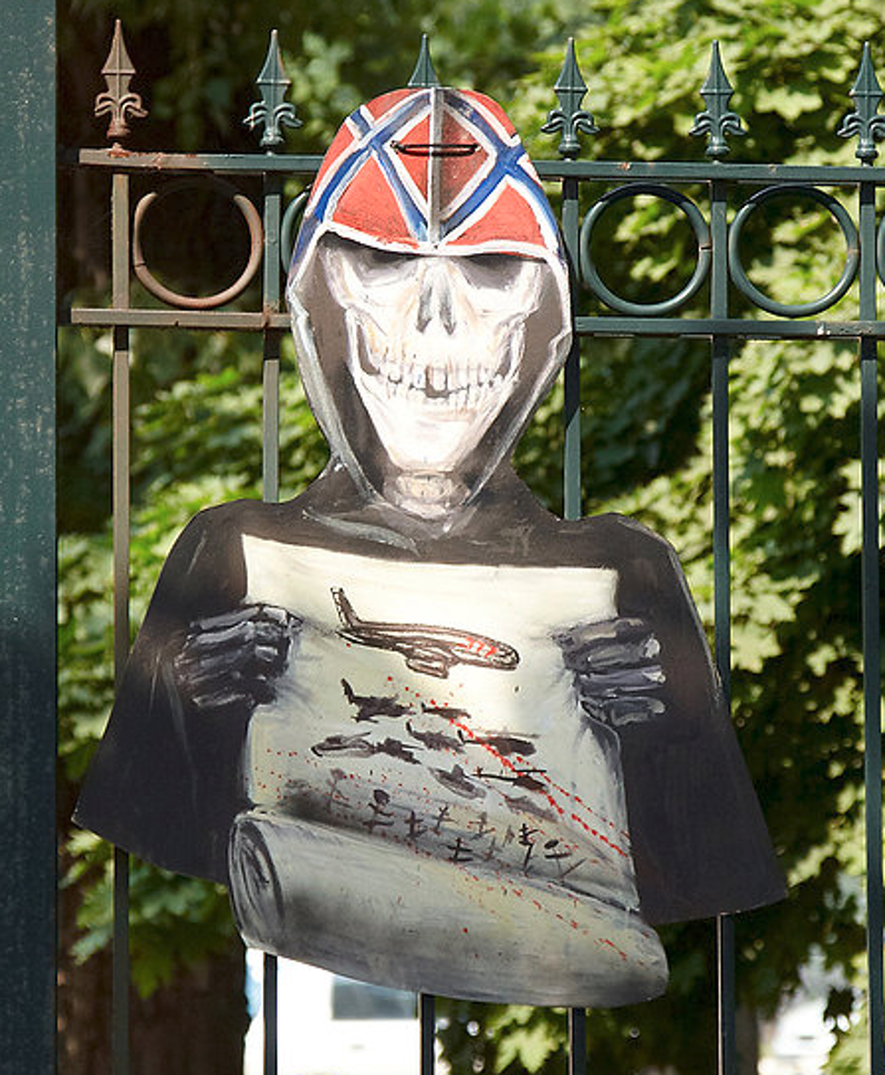 Másfél hónap után, tíz törött bordával szabadult a lázadók fogságából az a donyecki képzőművész, aki köztéren merte gúnyolni a „kis zöld emberkéket”. A művész jelenleg Kijevben tartózkodik, és könyvben készül kiadni a kínzásáról készített grafikáit.