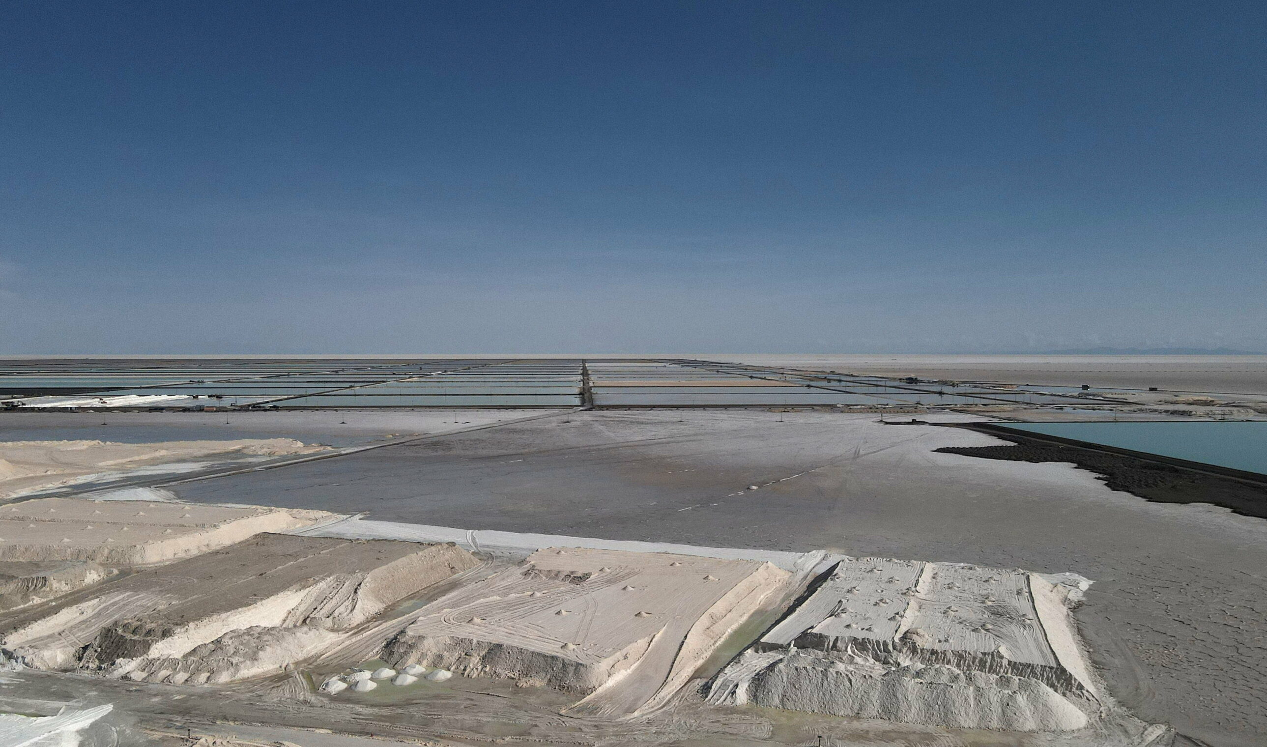 Llipi, 2023. december 15. A lítiumakkumulátorokban használt lítium-karbonátot előállító üzem az Uyuni sósivatagban, a bolíviai Llipi környékén a létesítmény avatóünnepsége után, 2023. december 15-én. A tervek szerint az üzemben 15 ezer tonna lítium-karbonátot gyártanak évente. MTI/EPA/EFE/Luis Gandarillas
